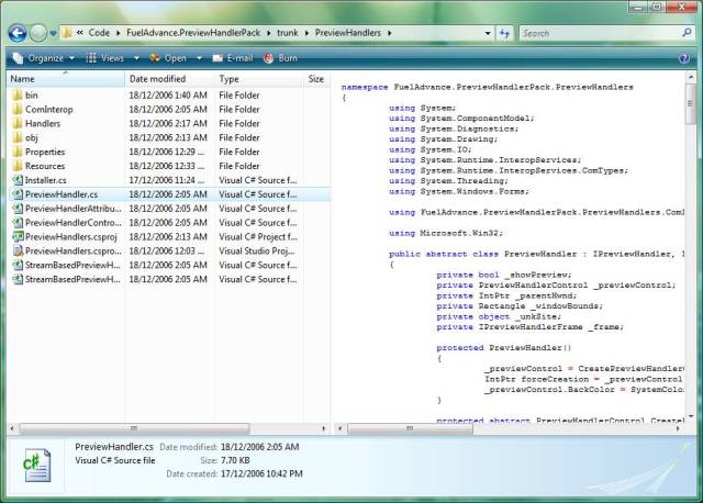 To make them more developer friendly, I developed a set of preview handlers for file types commonly used by developers.