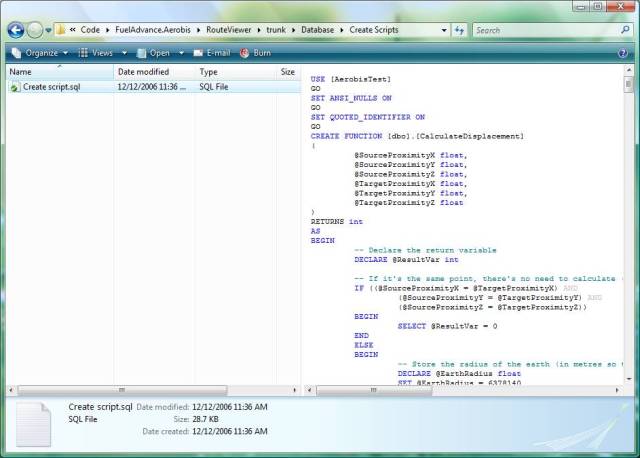 It works great, but it has one small annoying problem. When, for example, I preview a file (a .sql file in this example), and then I edit it in notepad, I cannot save the file because there is still an open handle to it.