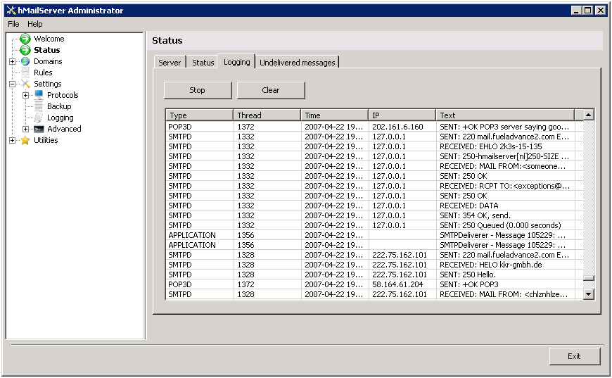 On one of the servers I manage, we host email for 50 or so of our client’s domains with hMailServer. It’s a great little mail program that just works. (In a hosting environment like this, Exchange is too tightly coupled with Active Directory to be useful.)