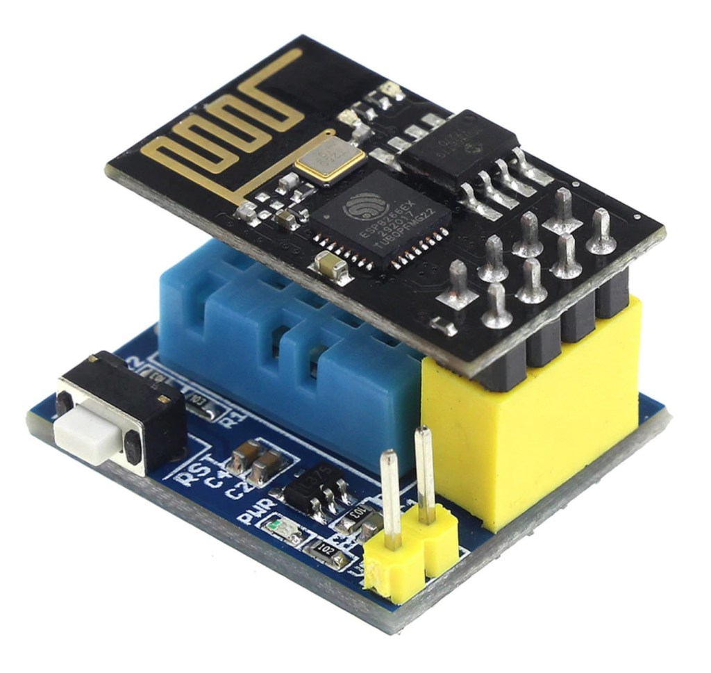 One minor annoyance is that they need to be powered by 3.3V, so you can’t just attach 5V from an old USB charger. There are however two very prevalent base boards: a relay board, and a temperature/humidity board. Each of these supports the ESP-01S just plugging into them, and can be powered by 5-12V. You can pickup the ESP+relay, or ESP+temperature combo for ~$3.