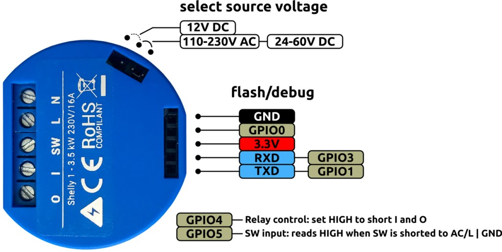 The Shelly1 is a 230v/16A-capable relay, designed to fit in to tiny spaces like behind an existing light switch panel. It can be wired in with an existing physical switch, so you still have the instant experience of a normal light switch, but now it can be Wi-Fi monitored and controlled as well. Here it is with an Internationally Standard Sized Oreo for scale: